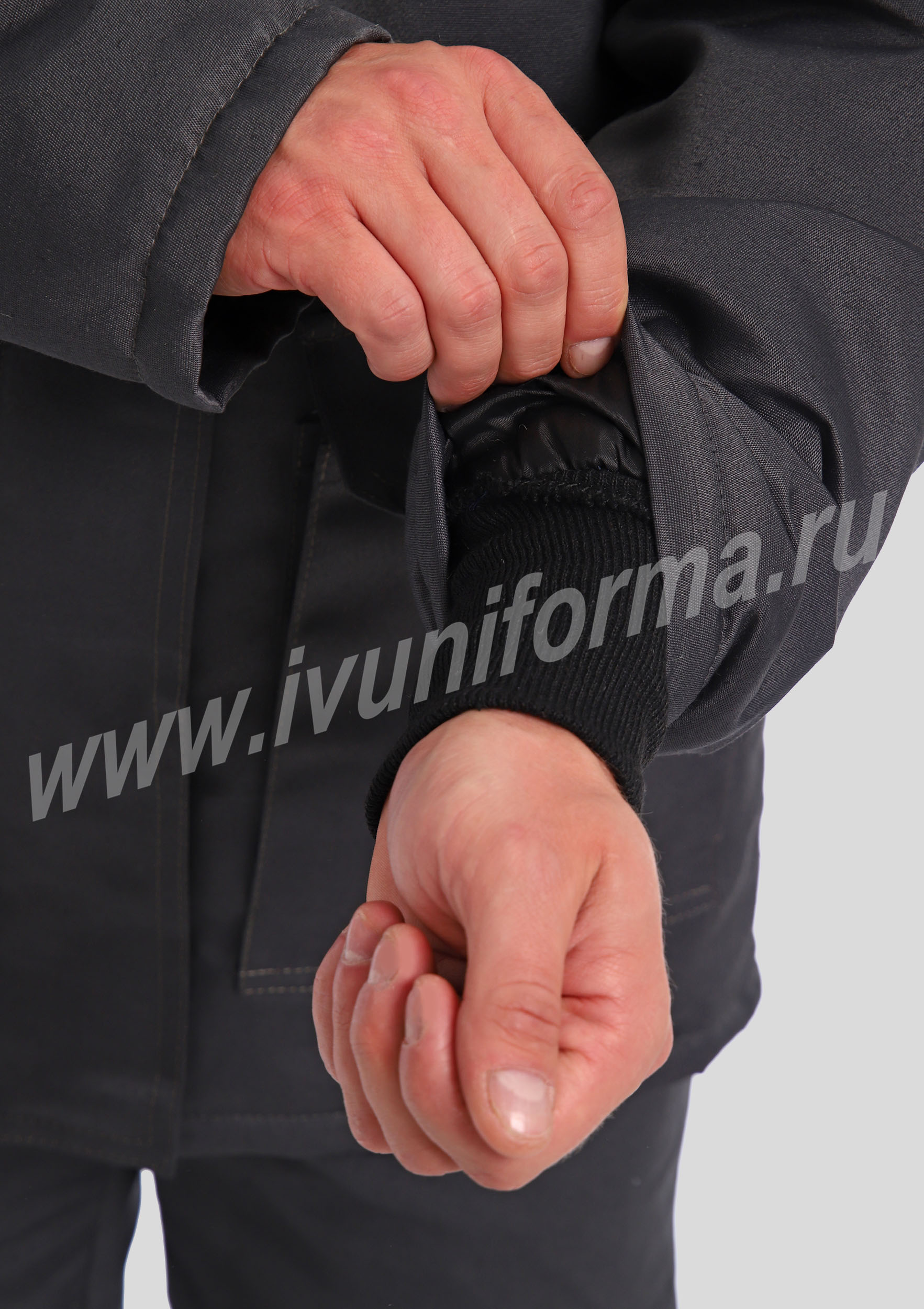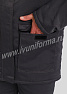 Костюм рабочий утепленный мужской состоит из куртки и полукомбинезона. Куртка удлиненная с воротником стойкой, прямого силуэта с застежкой на тракторную молнию с ветрозащитным клапаном на липучках "Velcro". На куртке два нагрудных и два нижних накладных кармана с клапанами и застежками на липучку "Velcro". Капюшон съёмный, на молнии ,с возможностью регулировки объема по лицевой части. Полукомбинезон прямого силуэта, с застежкой на две пуговицы и молнию. На брюках два передних кармана с косой линией входа. Однослойное утепление брюк объемом 200 гр/кв.м.