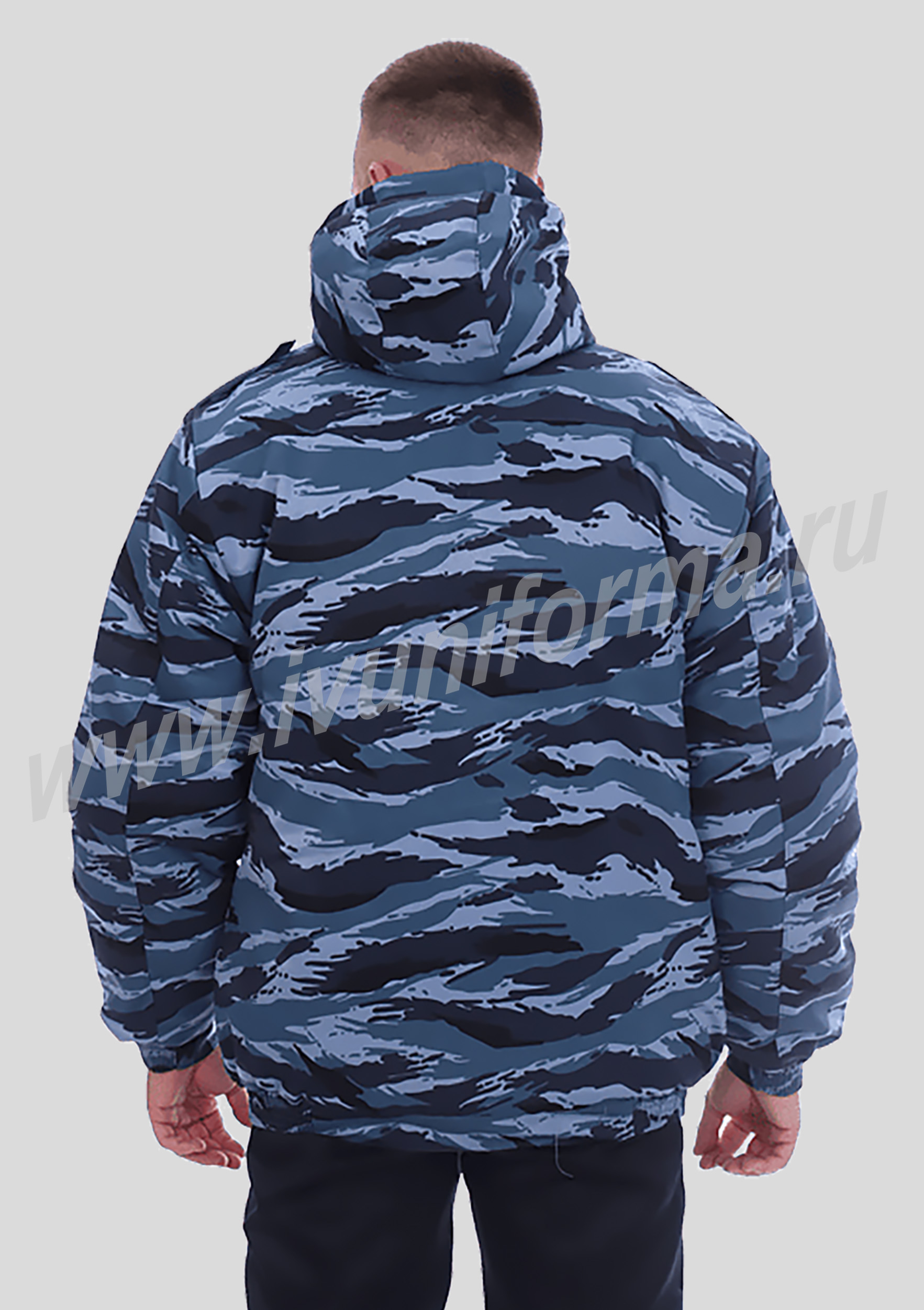 Куртка рабочая мужская для охранника, укороченная, с капюшоном на разъемной молнии, закрытой ветрозащитной планкой на кнопках. На полочке один нагрудный прорезной карман на молнии, нижние карманы прорезные с листочками. Один внутренний карман на молнии. Рукава с притачными манжетами. Воротник - стойка. Капюшон съемный с регулировкой по объему. Куртка предназначена как для повседневной носки на предприятиях так и для сотрудников охранных структур.