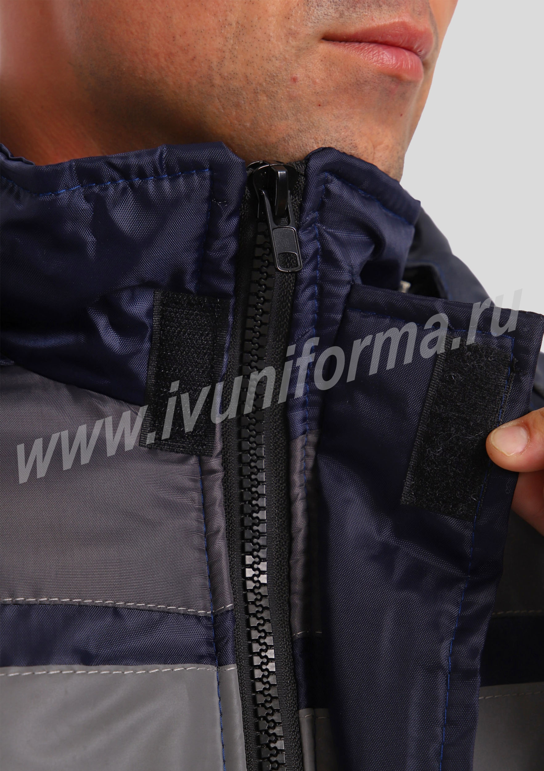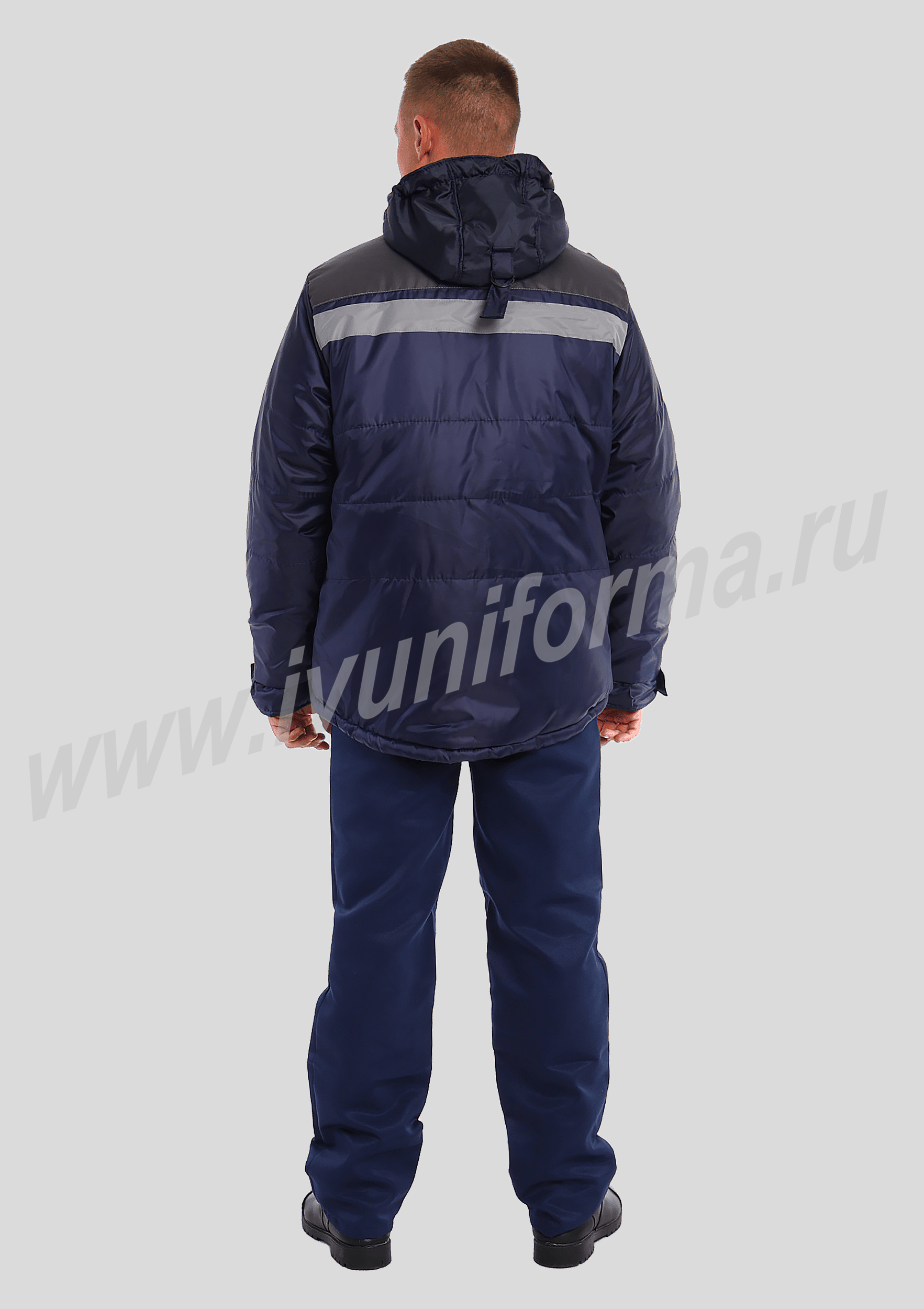 Куртка предназначена для инженерно-технических работников и представителей рабочих специальностей в качестве спецодежды для защиты от пониженных температур. Куртка выполнена с ветрозащитной планкой, застежкой на молнию и контактную ленту. Кокетка спинки и полочек выполнены из отделочной ткани, по шву притачивания кокеток спинки и полочек расположены светоотражающая полоса шириной 50 мм и светоотражающий кант, обеспечивающие защиту работающего человека в условиях пониженной видимости. Капюшон регулируется по лицевой части при помощи эластичного шнура и фиксаторов. Низ рукава выполнен на манжете, размер которого регулируется при помощи контактной ленты.